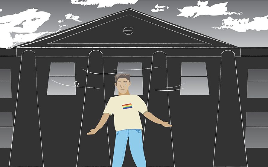 Shahamat collects experiences of gay men in college and analyzes how competitive dynamics amongst gay men lead to failed experiences of community building on campus.